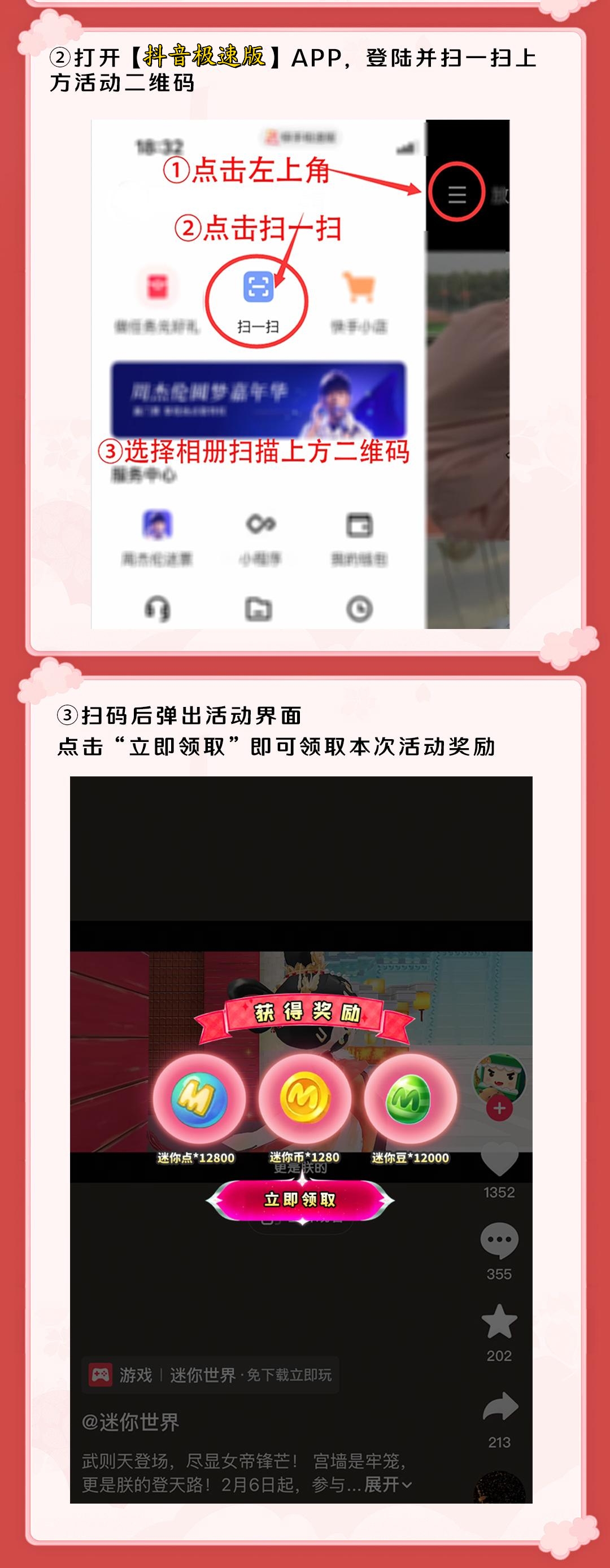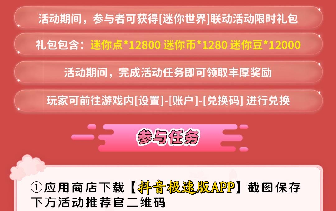 领取失败:请完成以下任务再领取【礼包内含:迷你币*1280 迷你点*12800 迷你豆*12000】